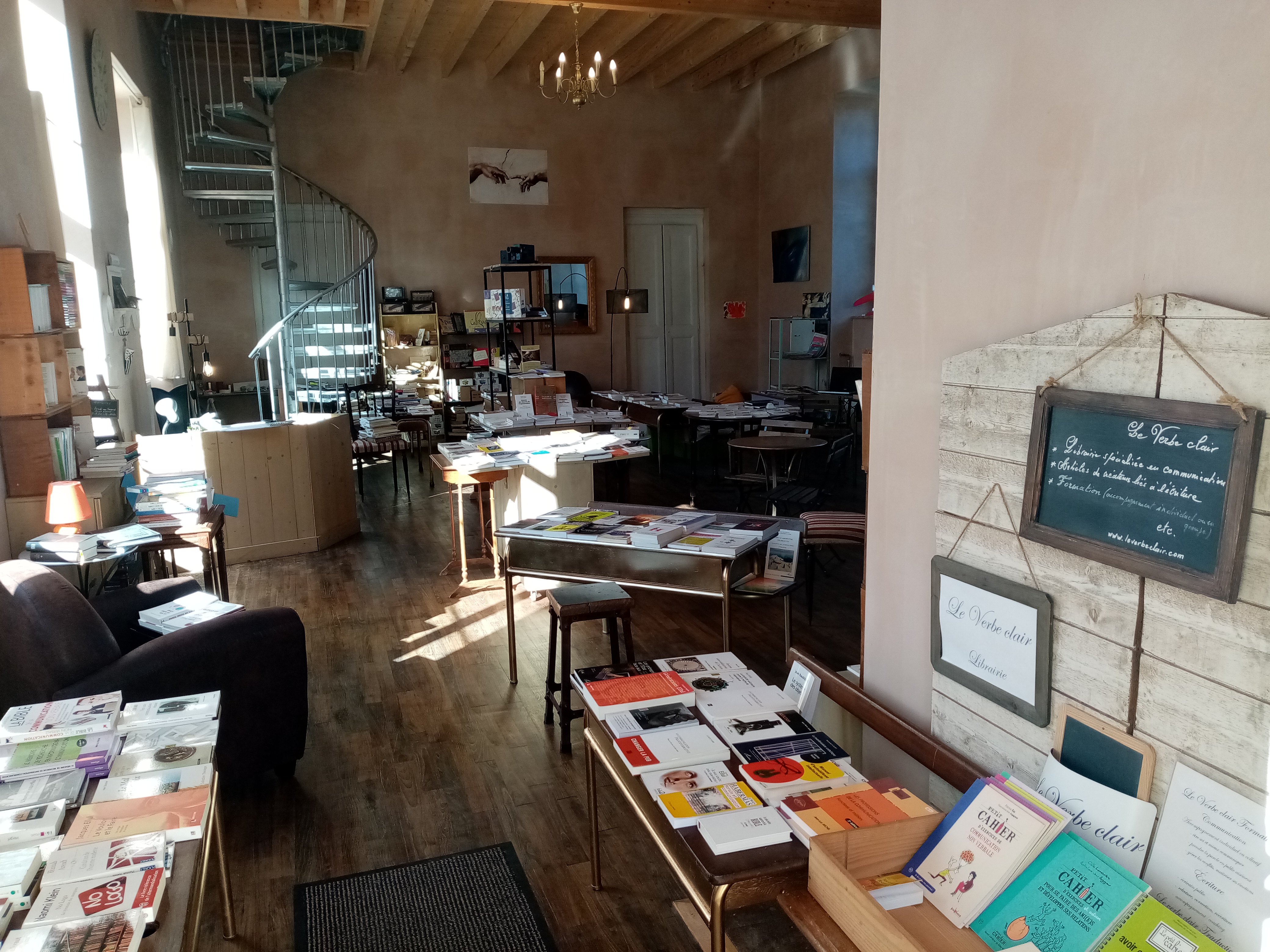 Le Verbe clair est une librairie spécialisée dans les domaines de la communication (approche critique, alternative et éthique), de la pensée critique (ouvrages philosophiques, sociologiques, anthropologiques, psychologiques, théologiques) et du protestantisme. C’est aussi un lieu de formation et d’accompagnement (en communication et en écriture), de réflexions et de débats, avec un espace pour enfants et pour prendre une tasse de thé ou de café.