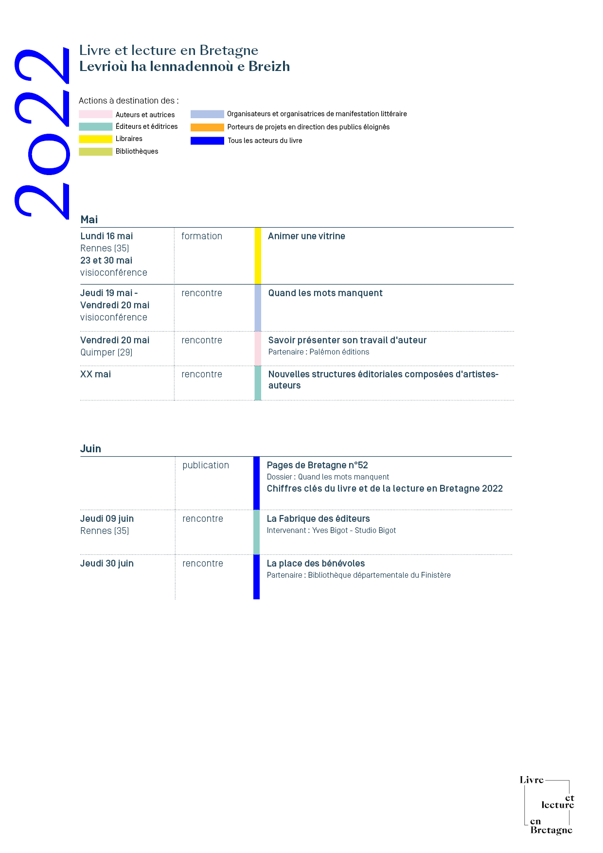 Calendrier des actions de Livre et lecture en Bretagne au deuxième semestre 2022