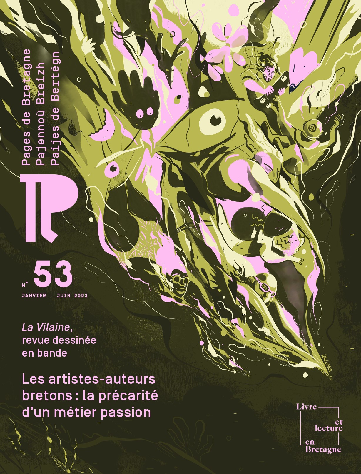 - A la une : un portrait du collectif d'auteurs et autrices BD La Vilaine (couverture réalisée par Loïc Gosset et pages intérieures par Jop)